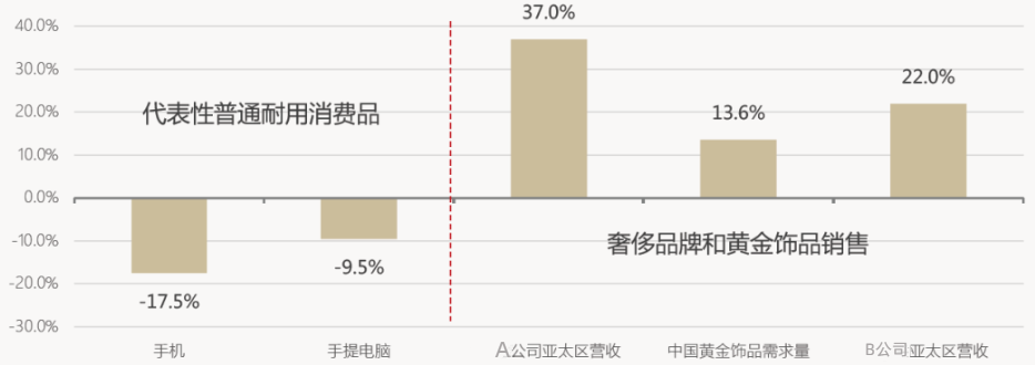 商品消费方面,进入2023年后,相比普通消费品的整体乏力,高端消费品呈现出强劲反弹的态势。全球各大奢侈品牌在中国市场都获得了理想的营收恢复。某头部奢侈品集团今年以来在除日本以外的其他亚洲地区营收同比增长超3成,其中中国市场贡献了绝大部分增长,在各地区中增幅最大。此外,黄金的投资性消费也异常火爆,从上半年零售额增速来看,黄金饰品的增速大幅领先于其他普通类商品。