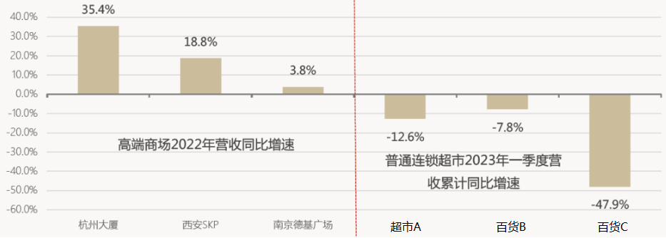 高端商场vs普通商超营收同比增速
