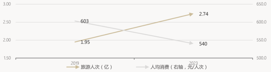 2019和2023年五一假期旅游人次